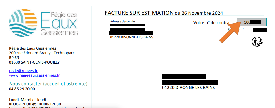 Responsable du traitement : Régie des Eaux Gessiennes Finalités du traitement : Gestion des services d'eau potable et assainissement, facturation, et amélioration de la qualité du service. Durée de conservation des données : Les données seront conservées pour la durée nécessaire à la réalisation des finalités pour lesquelles elles ont été collectées, conformément aux obligations légales. Droits des usagers : Conformément à la réglementation en vigueur, les usagers disposent d'un droit d'accès, de rectification, d'effacement, de limitation du traitement, de portabilité des données, et d'opposition. Ces droits peuvent être exercés par demande écrite adressée à Régie des Eaux Gessiennes Technoparc BP63, 200 rue Edouard Branly, 01630 Saint Genis Pouilly ou par courriel à regie@reoges.fr.